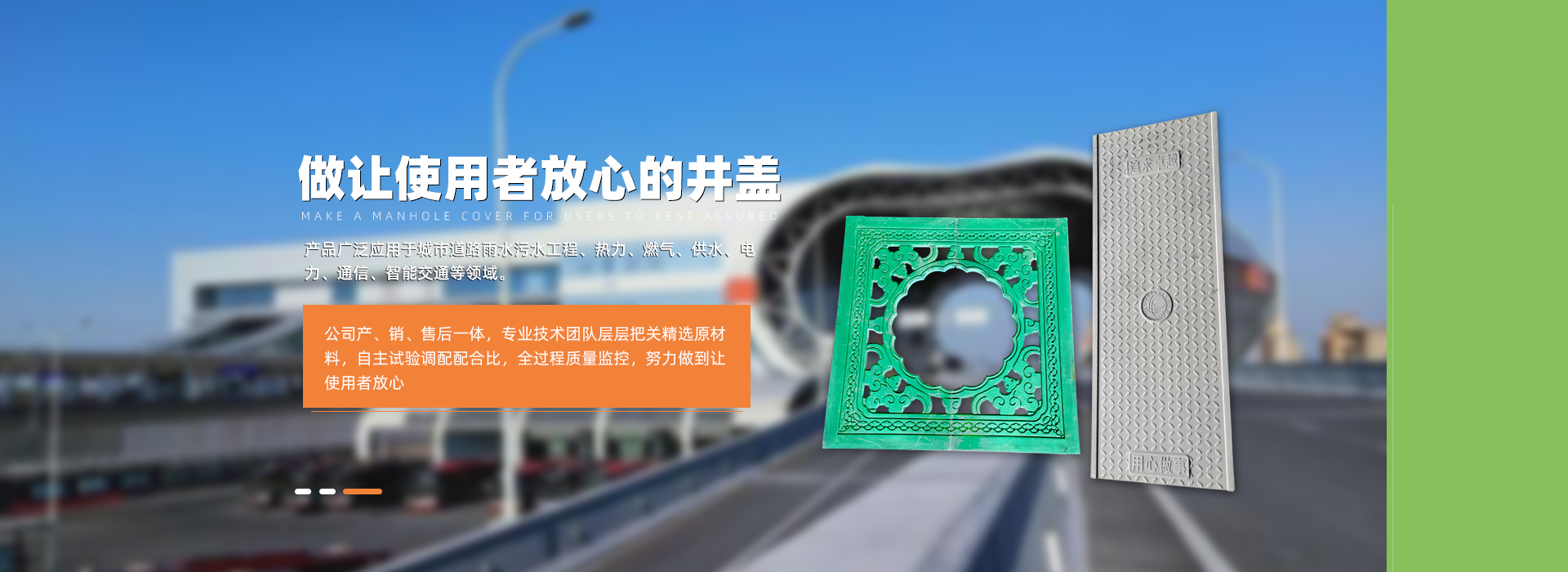 復(fù)合井蓋廠家:淄博高分子制品有限公司主營(yíng)高分子井蓋、復(fù)合樹(shù)脂井蓋等產(chǎn)品,其位于華東地區(qū)工業(yè)重鎮(zhèn)、齊國(guó)古都、山東省淄博市臨淄區(qū)朱臺(tái)鎮(zhèn)工業(yè)園,工廠始建于2002年,于2015年公司化改制,是山東省早一批從事研究生產(chǎn)高分子新型材料井蓋、水篦子的生產(chǎn)型企業(yè),本公司依托雄厚的研究實(shí)力和密集的人才優(yōu)勢(shì),一直致力于研究生產(chǎn)新型環(huán)保的高分子市政設(shè)施配套產(chǎn)品。產(chǎn)品以鋼筋網(wǎng)為骨架,采用BMC/SMC高強(qiáng)度樹(shù)脂、重鈣、玻璃纖維等......